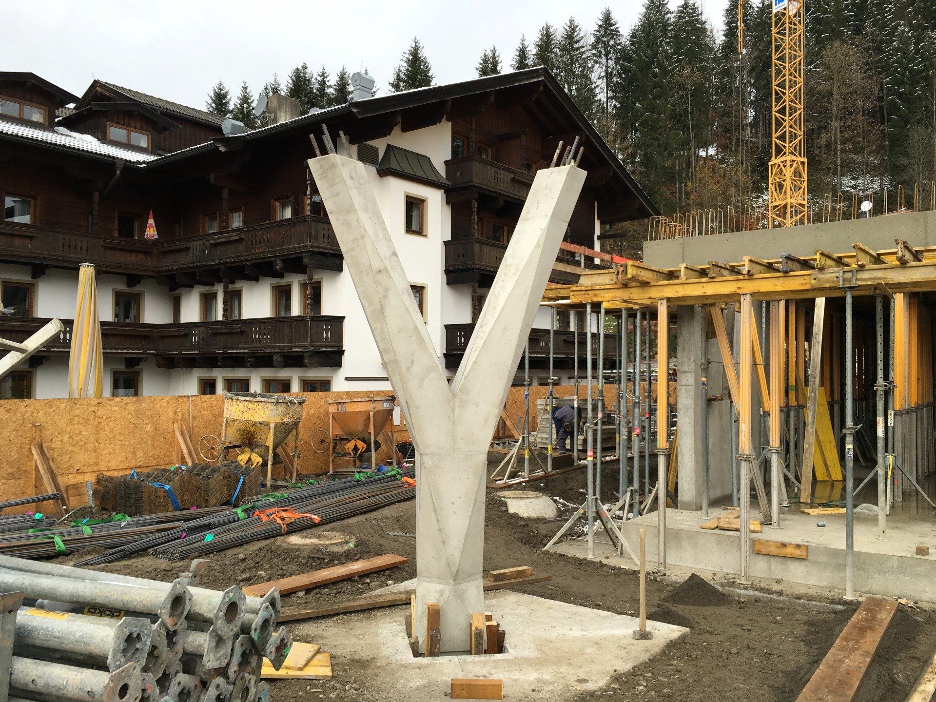 Die Konstruktion des Gebäudes besteht aus tragenden Wandscheiben und Stahlbetonstützen. Punktgelagerte Stahlbetondecken liegen auf diesen Elementen auf. Die Außenwände der Pflegegeschosse werden in Mauerwerk ausgeführt, welches hochwärmegedämmt und weiß verputzt wird. Mit hölzernen Plattenmaterialien werden die Fensterbereiche akzentuiert. Die Gemeinschaftsbereiche des Sockelgeschosses erhalten raumhohe Glaselemente, Servicebereiche präsentieren sich in wärmeren Tönen.