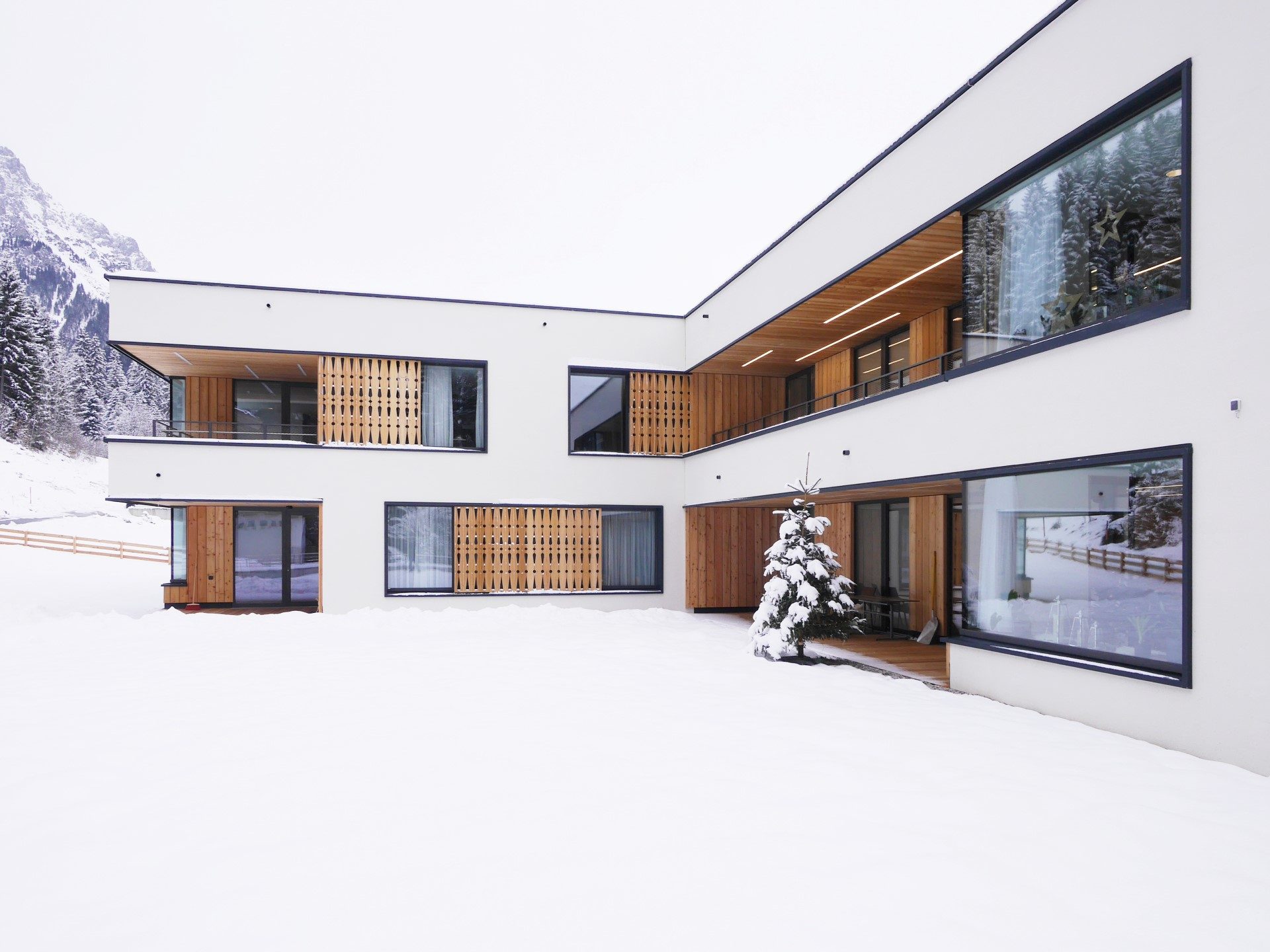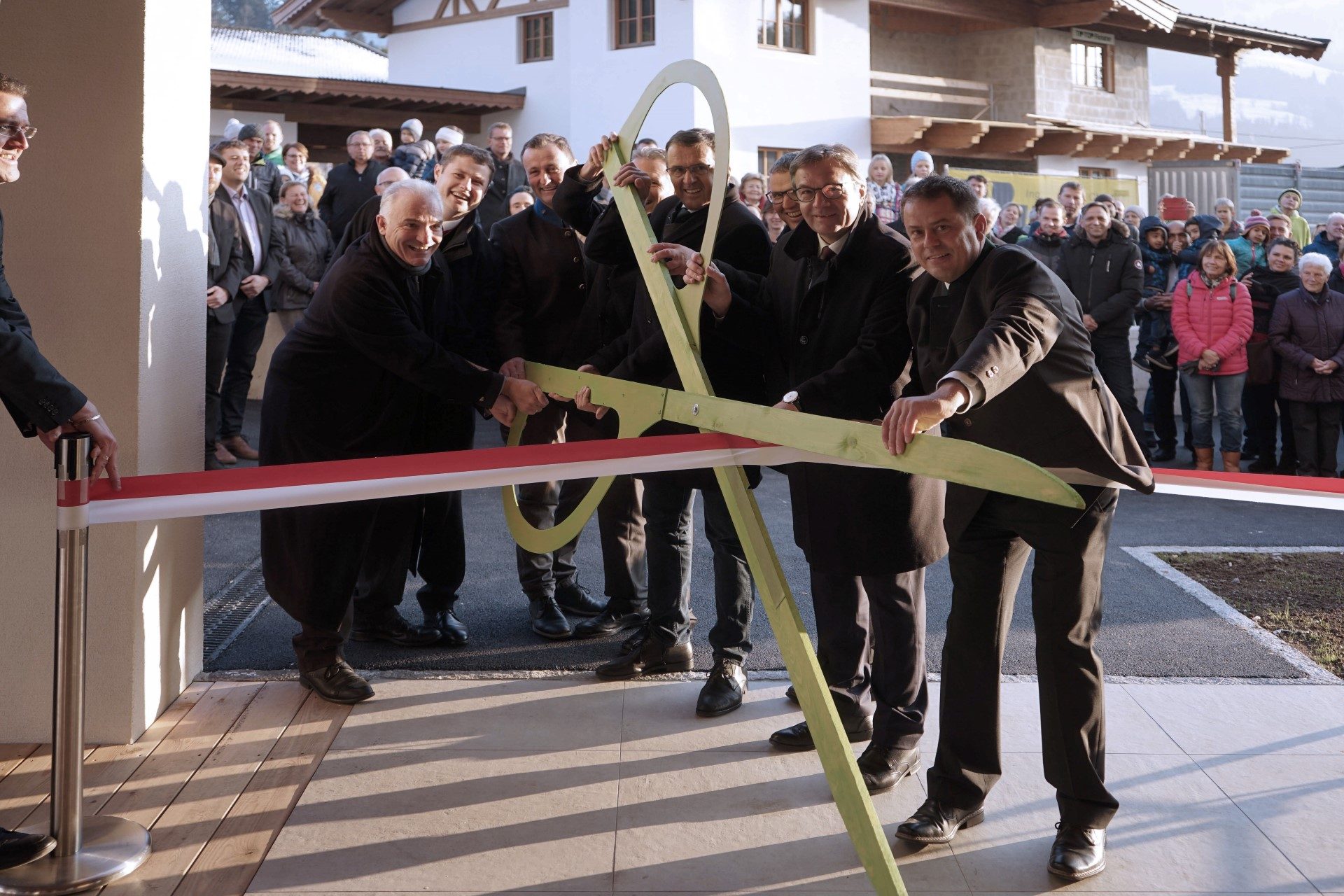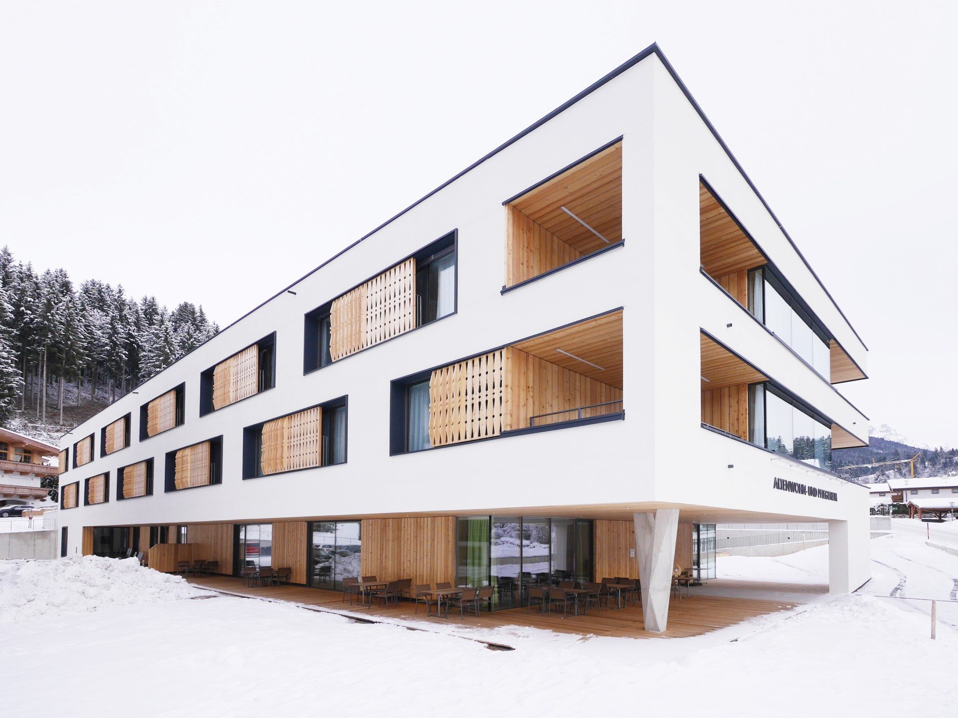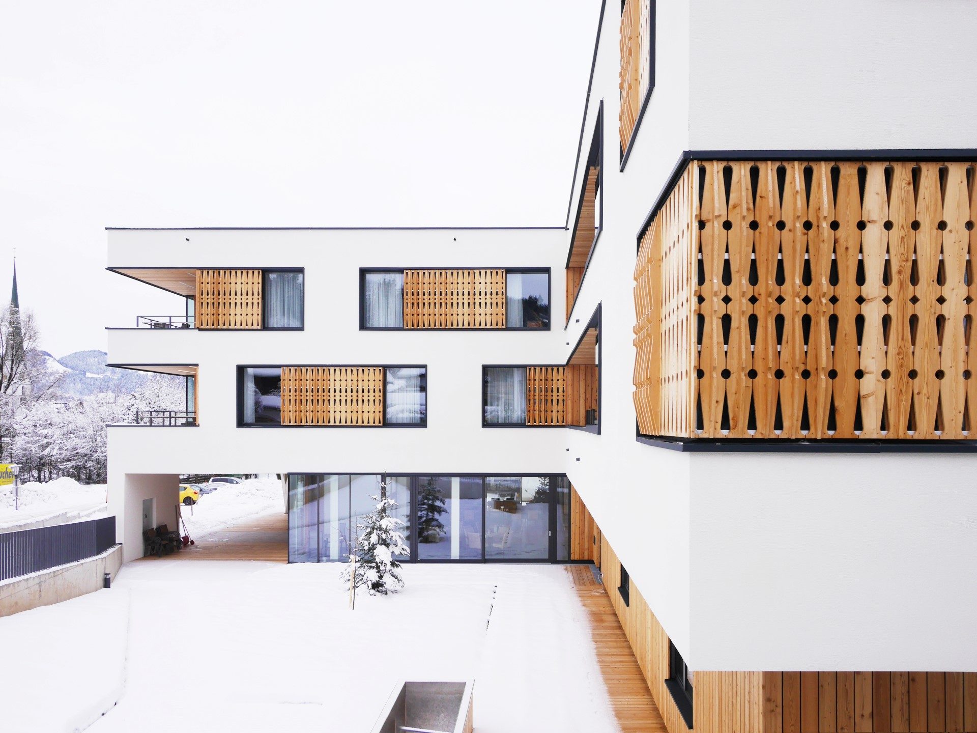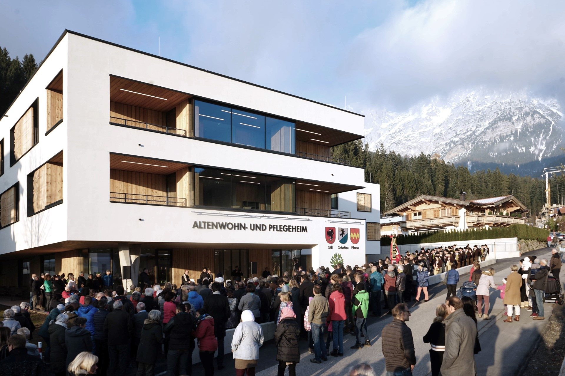Der warme Werkstoff Holz wird zum Wegbegleiter im Inneren, er wird an Boden, Wand und Decke eingesetzt. In den Bewohnerzimmern erhalten die Böden einen Linoleumbelag. Farblich aufeinander abgestimmte Oberflächen dienen im gesamten Gebäude der Orientierung der Bewohner. Hölzerne Falt- oder Schiebeläden sorgen für den notwendigen Sonnenschutz und stellen ein Bezugselement zur gewohnten örtlichen Handwerkstradition dar.