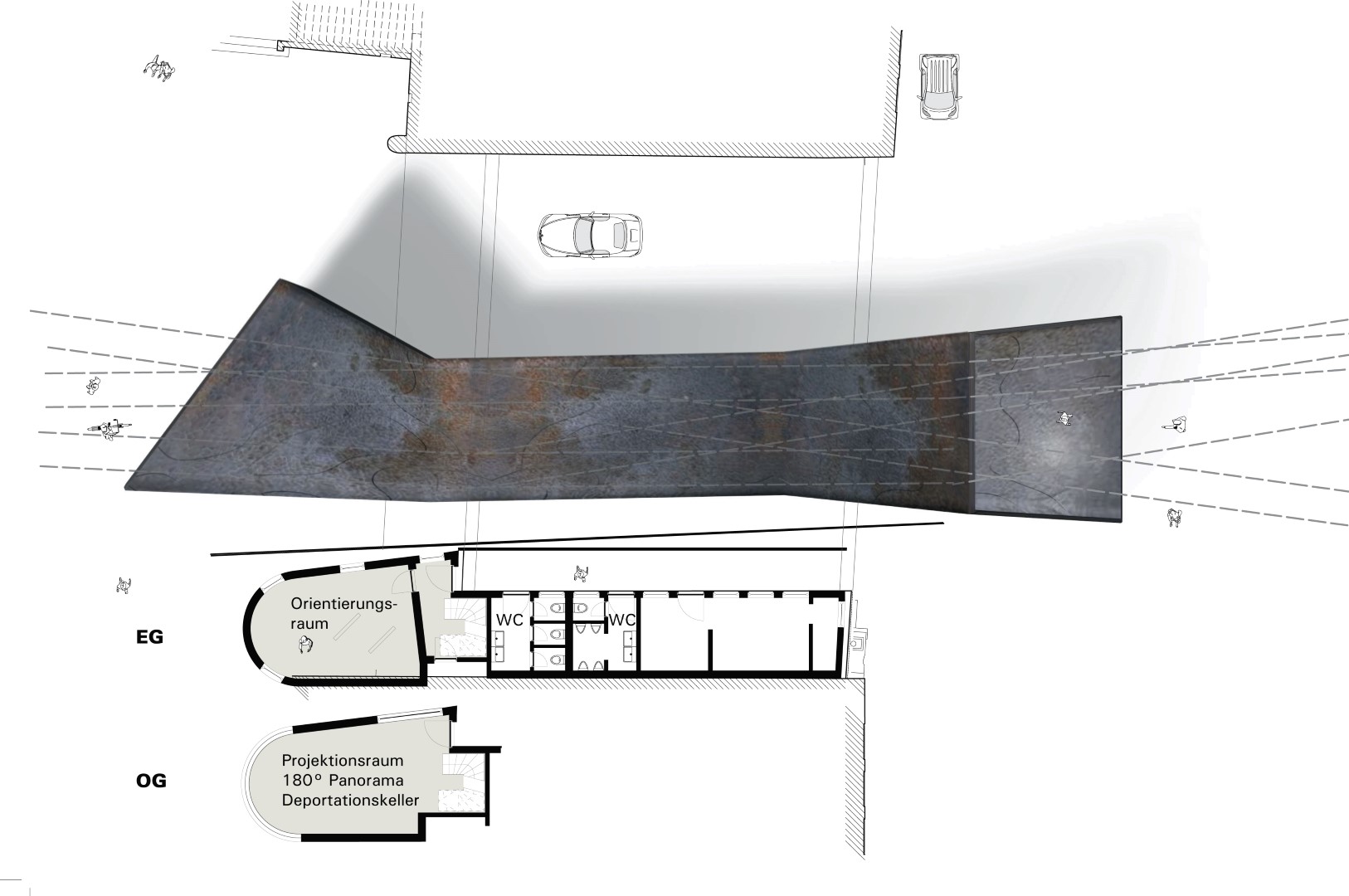 Der Passant wird durch den akustischen Raum dazu aufgefordert, mit dem Ort in einen Dialog zu treten und mehr über ihn zu erfahren. Die “Camera Silenta“ (emotionaler “Erinnerungsraum“) wird deshalb durch einen “Projektionsraum“ mit “Orientierungsebene“ergänzt.