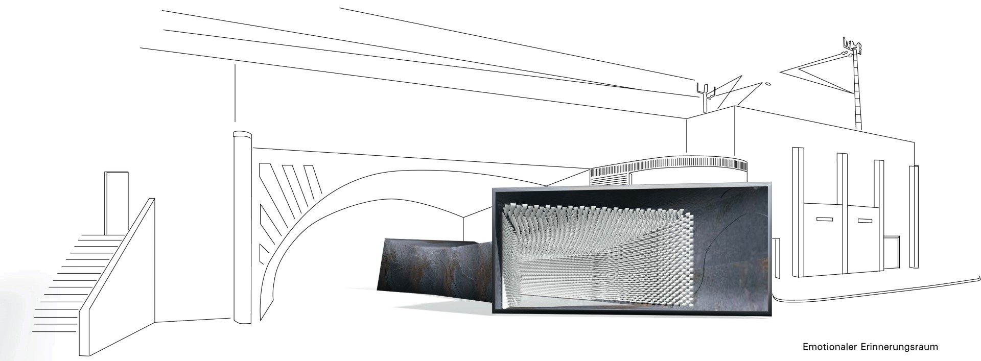 Bei unserem Entwurfsansatz geht es um das emotionale Zusammenspiel von architektonischem Raum, akustischer Irritation und dem Ort der Erinnerung. Wir versuchen, den Bereich räumlicher Wahrnehmung als akustischen Gestaltungsraum zu nutzen und damit Erinnerungen und Gefühle zu evozieren.