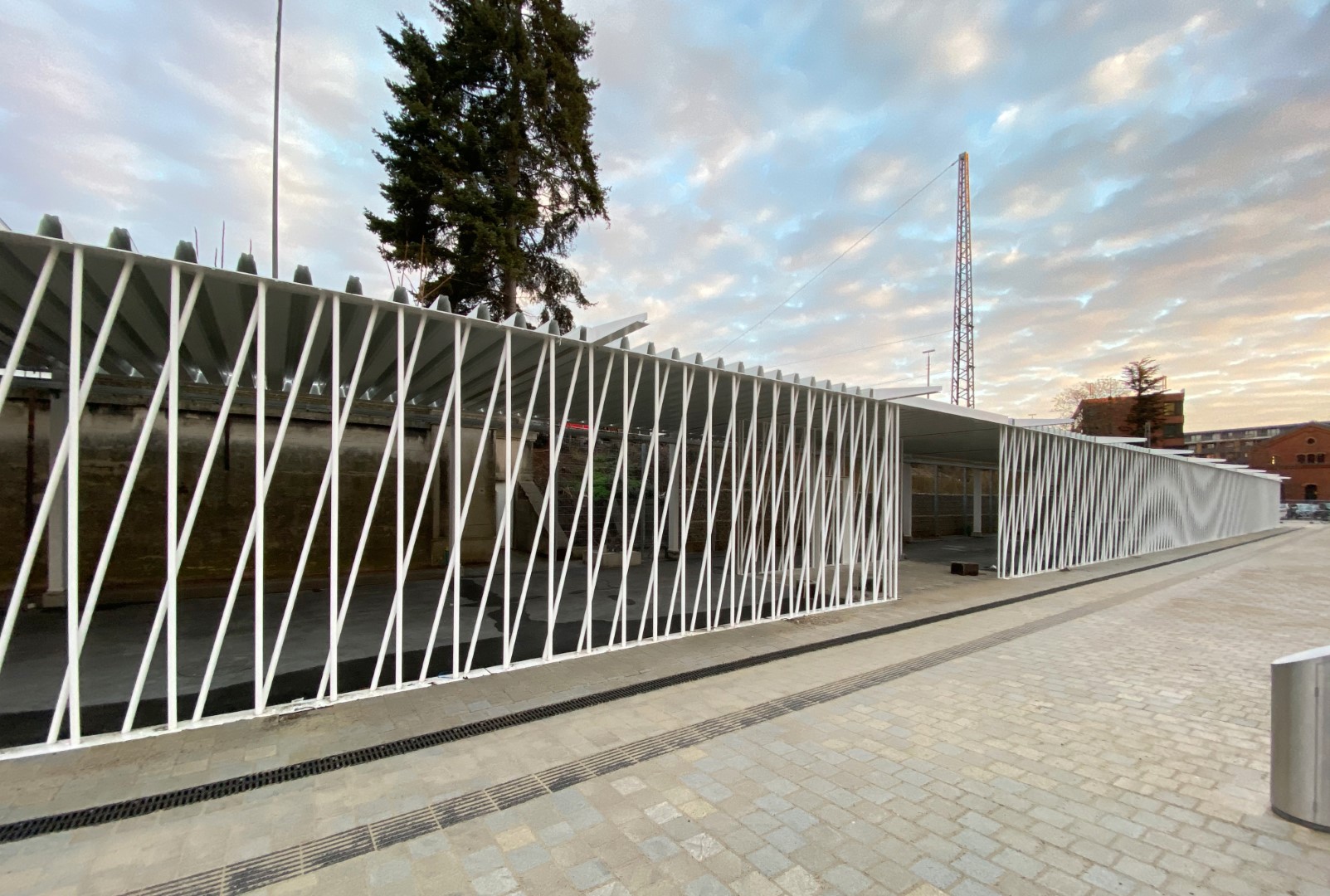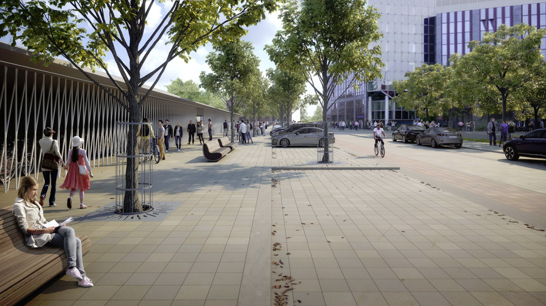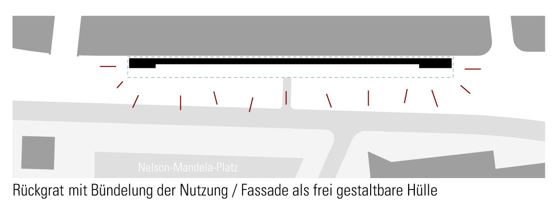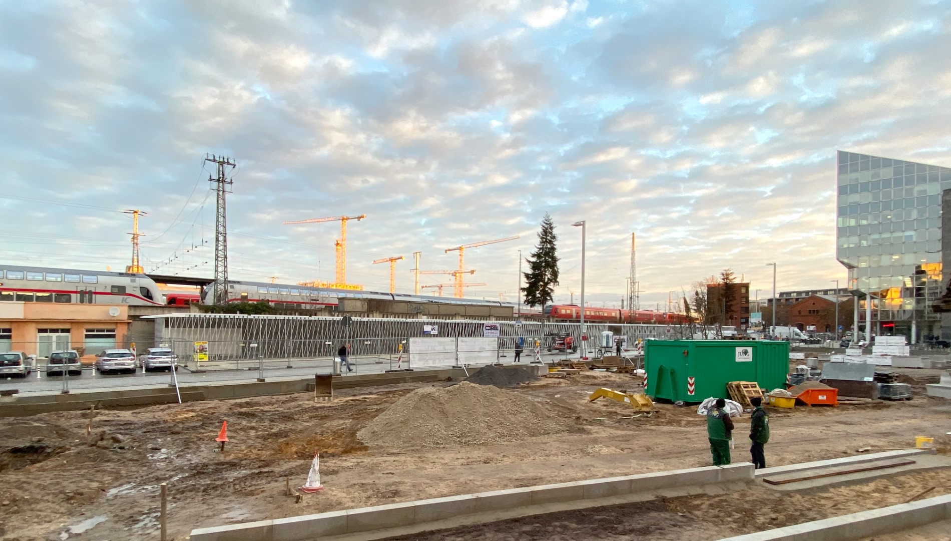 Am Südausgang des Hauptbahnhofes, am Nelson-Mandela-Platz soll in Zusammenarbeit mit den städtischen Ämtern ein gesichertes Fahrradparkhaus entstehen.