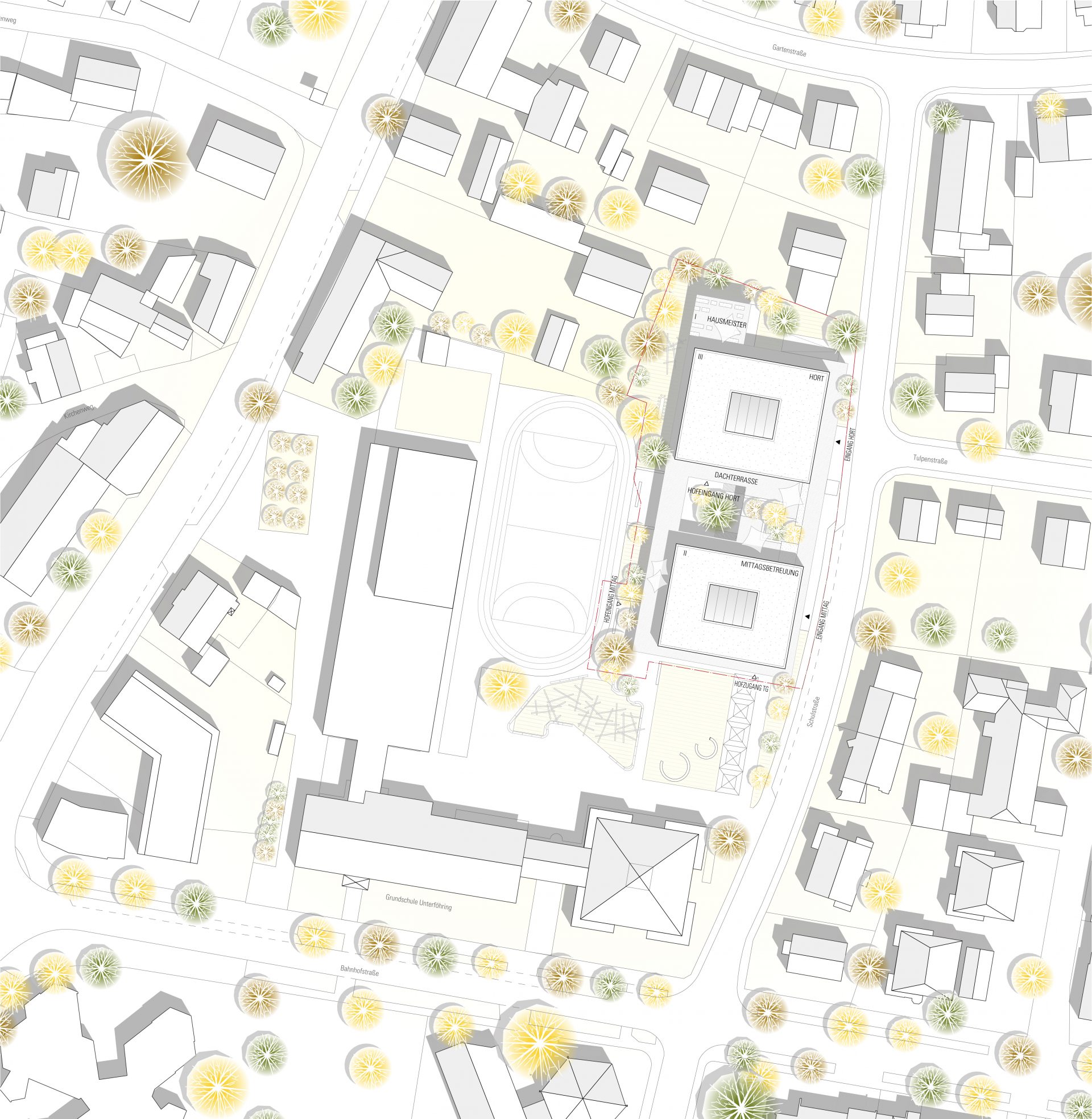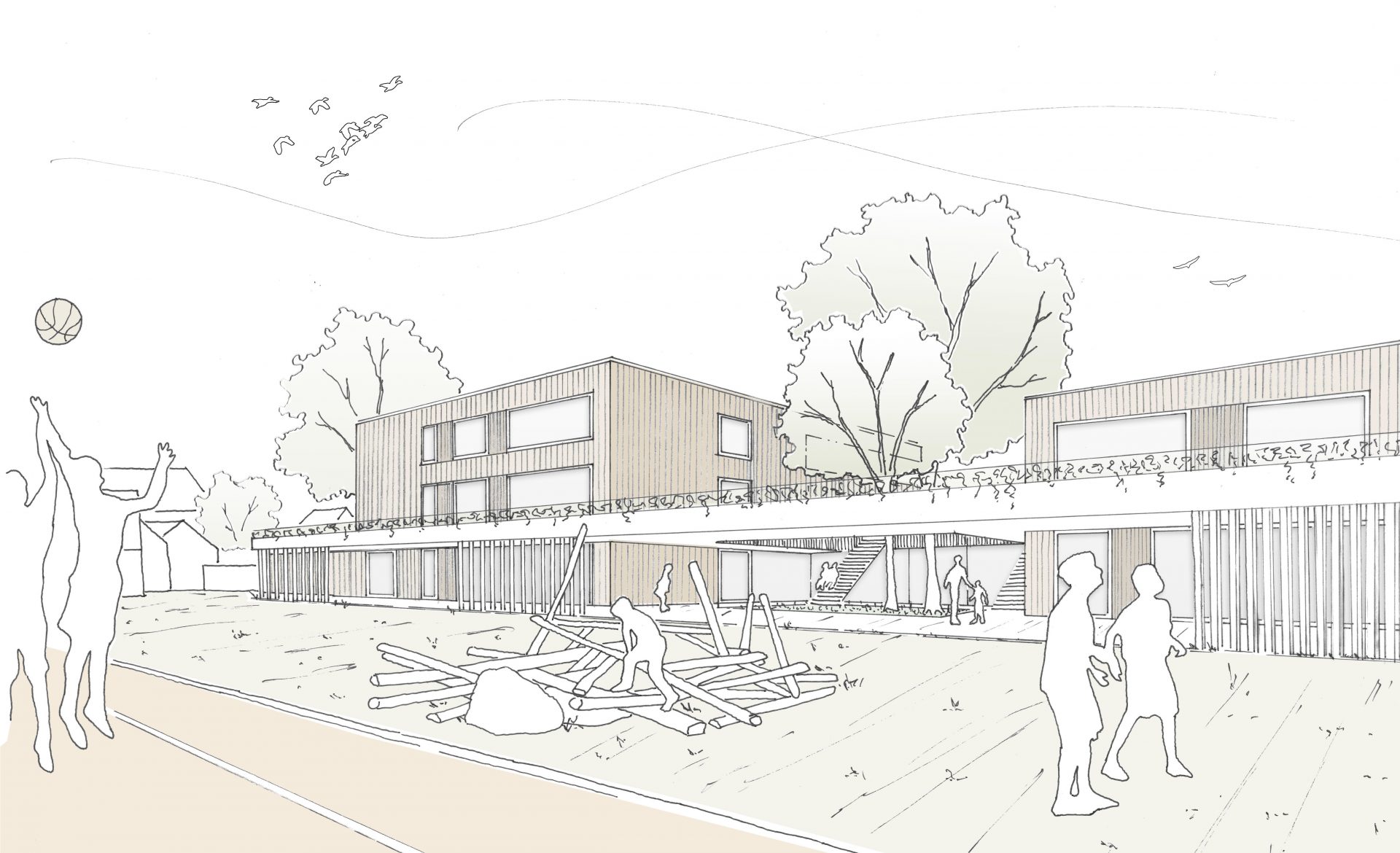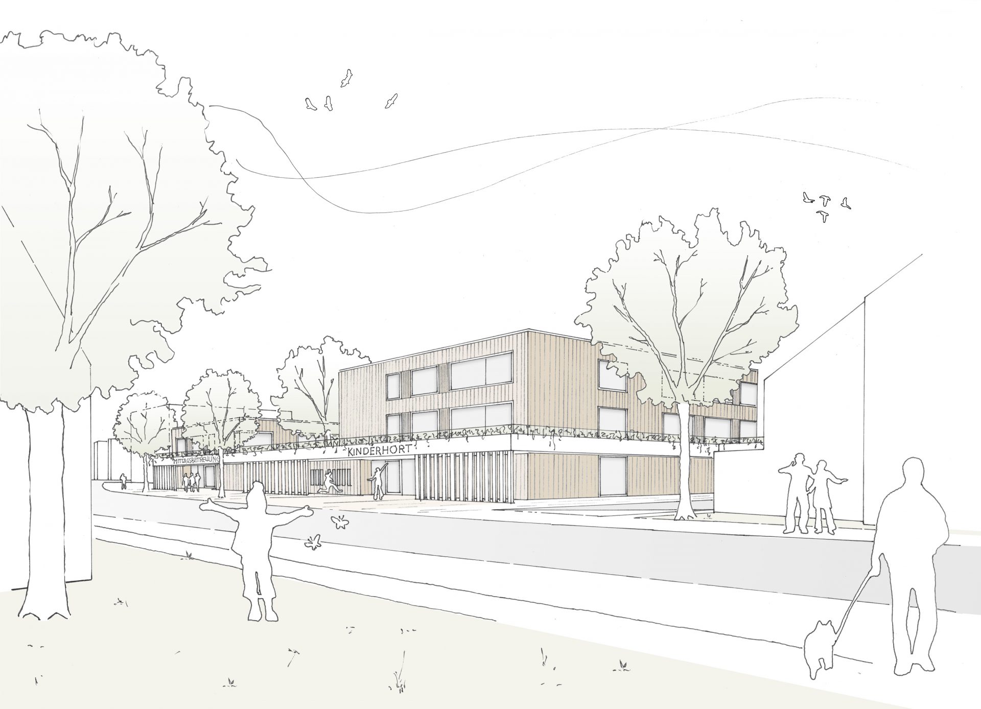- Realisierungswettbewerb 2020 - 1. Preis - zusammen mit studioB Landschaftsarchitektur und raum3 Architekten - Neubau des Hortes und der Mittagsbetreuung an der Schulstraße