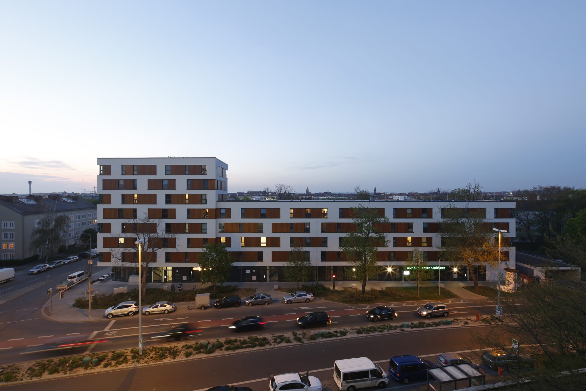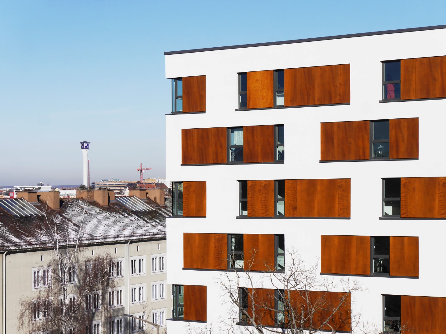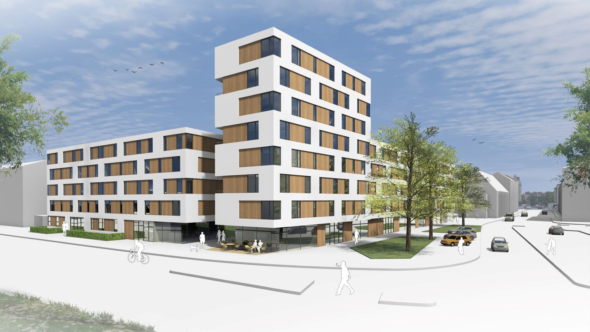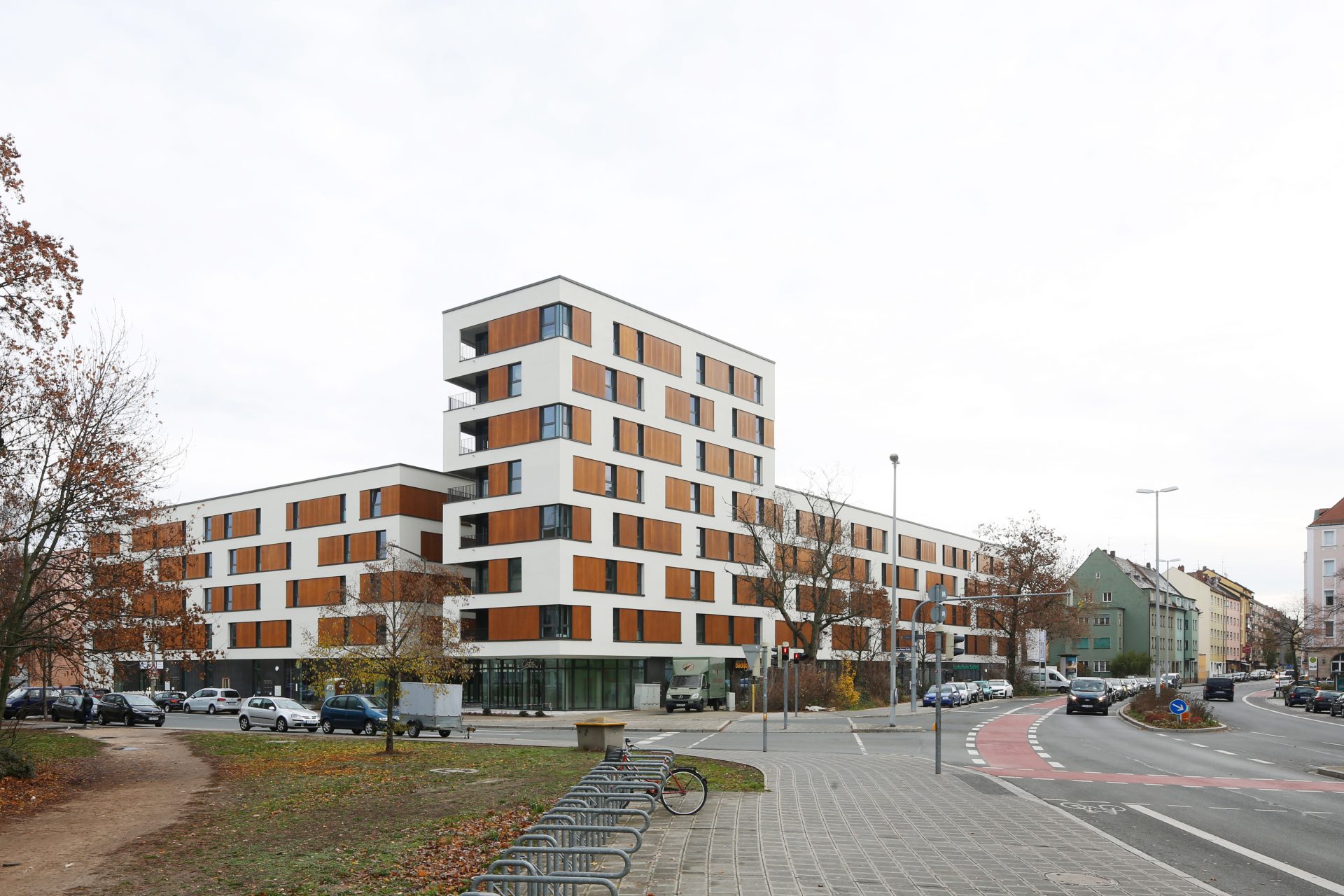Das Erscheinungsbild der neuen Baukörper ist geprägt durch eine schlichte und klare Formensprache. Die Gebäude sind in Schottenbauweise konzipiert. Durch wirtschaftliche Spannweiten der Decken werden die Baukosten optimiert. Die Außenwände und Brüstungen zur Straße werden aus Lärmschutzgründen in KS-Mauerwerk erstellt, nichttragende Innenwände werden in Leichtbauweise ausgeführt. Serielle Ausbauelemente sorgen für eine ökonomische Umsetzung.