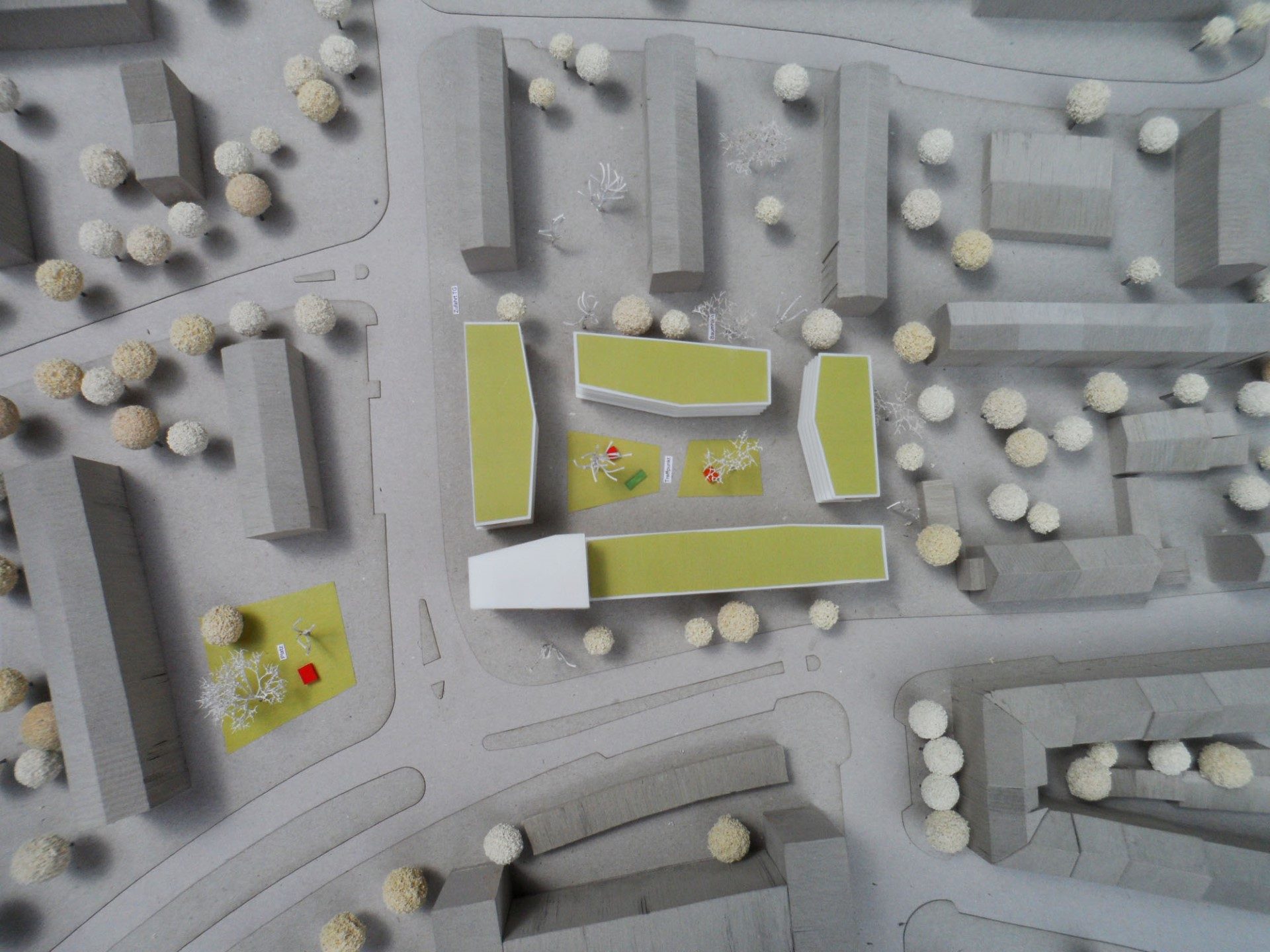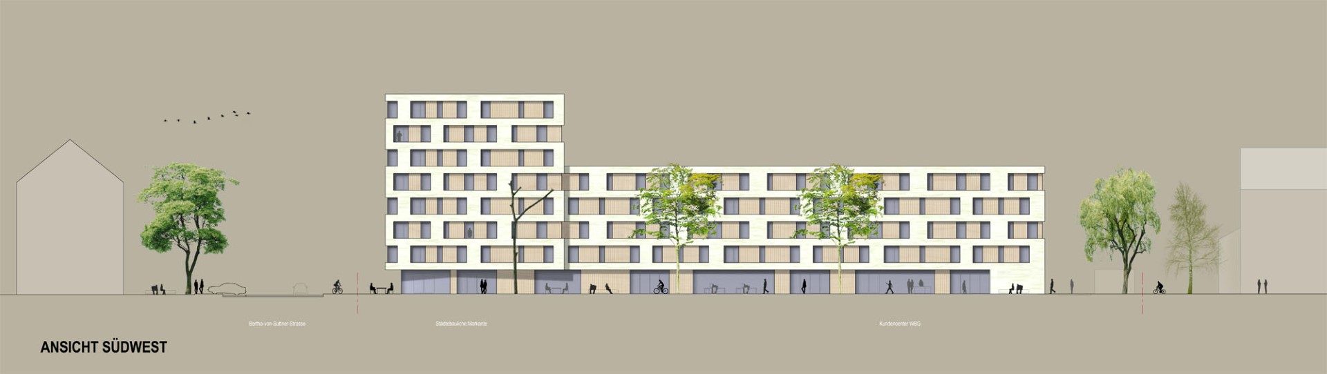 - Gutachterverfahren + Beauftragung 2014 - zusammen mit GP Wirth Architekten (ARGE Planungsgemeinschaft NWS), Wohnanlage mit 100 Wohneinheiten, Tiefgarage und Gewerbeflächen