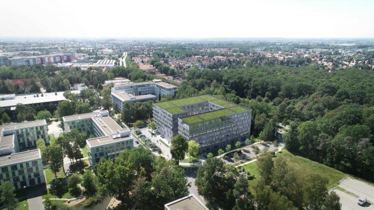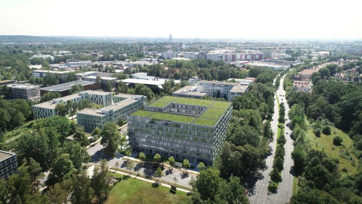 Nordostpark Beschreibung: Bürogebäude NordostparkBauherr: Rüstig Immobilien GruppeStandort: Nürnberg, NordostparkZeitraum: 2019-2023Fertigstellung: 2022BGF: 32.550 m²BRI: 116.800 m³Kosten: 41 Mio. Euro