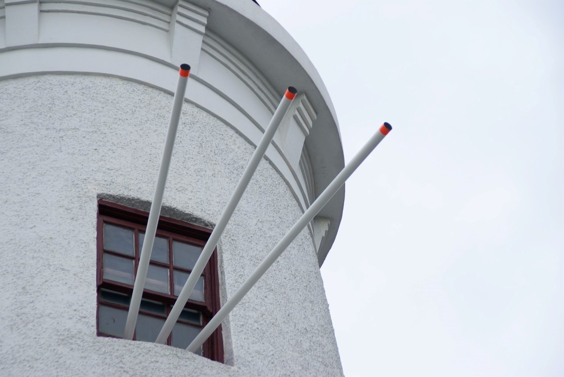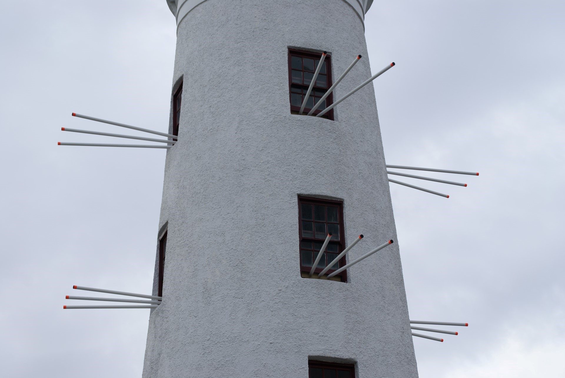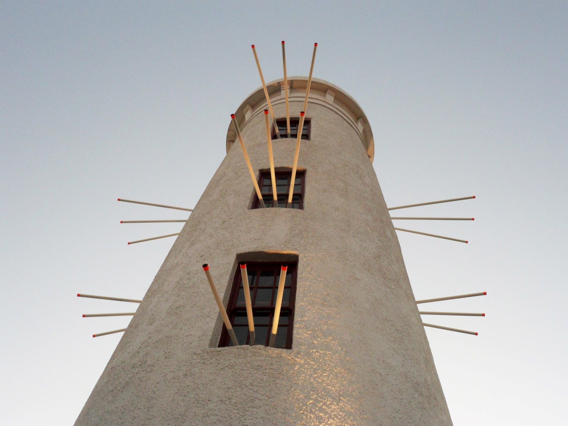 A set of 33 tubes was installed at the tower of the lighthouse. The tubes worked as analog filters to the ambient sounds. The specific resonance of each tube amplified certain frequencies. The tubes were tuned in a pentatonic scale (F, G#, Bb, C, D#). Microphones inside the tubes recorded the filtered sounds. Visitors were welcome to play around with amixer and combine the sounds from the tubes to chords and melodies. The sound were audible onloudspeakers inside the building.