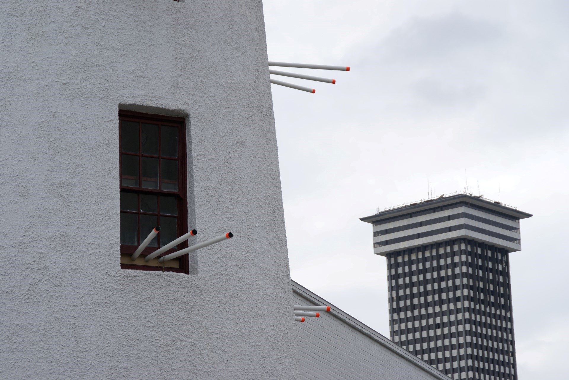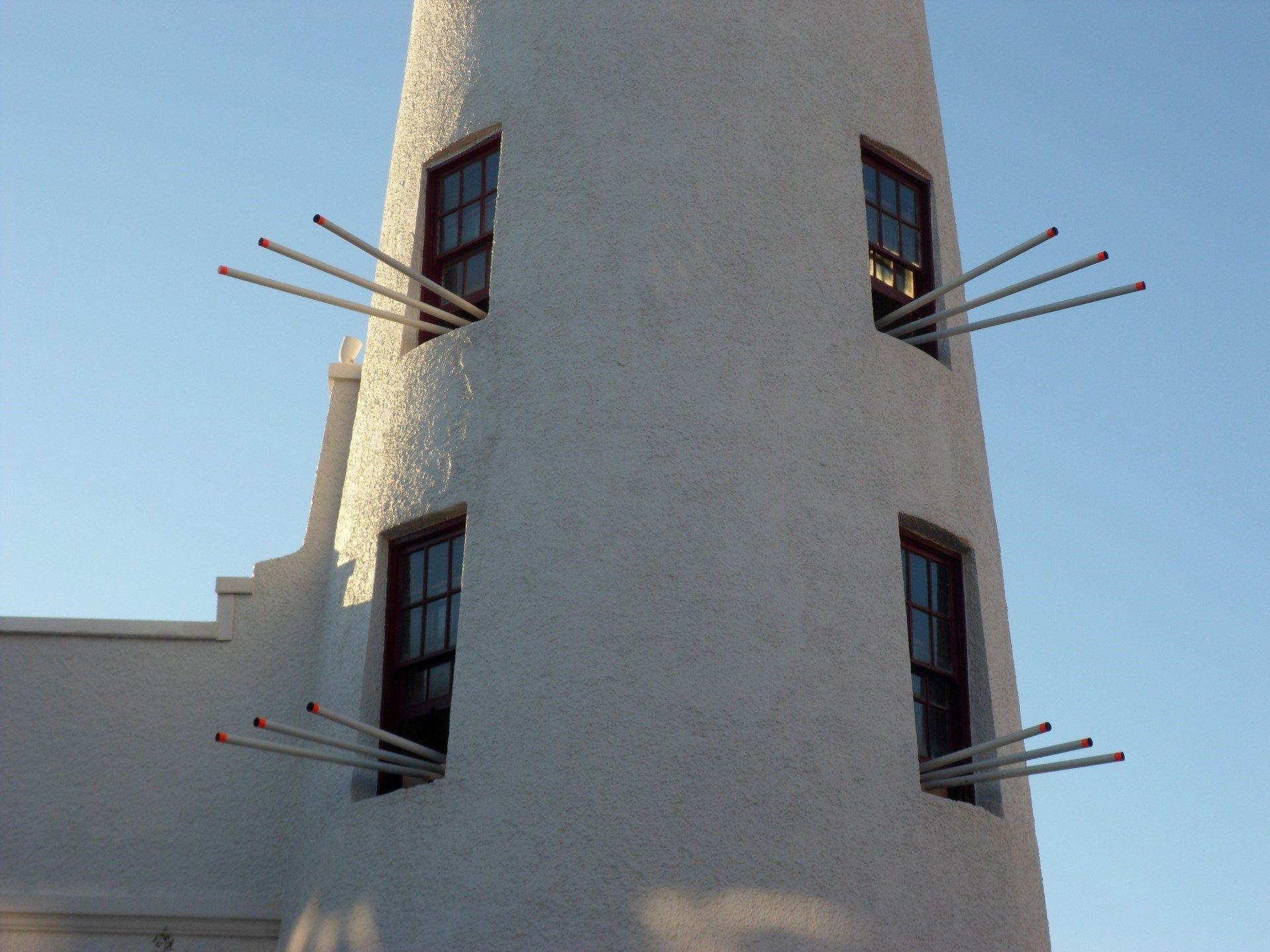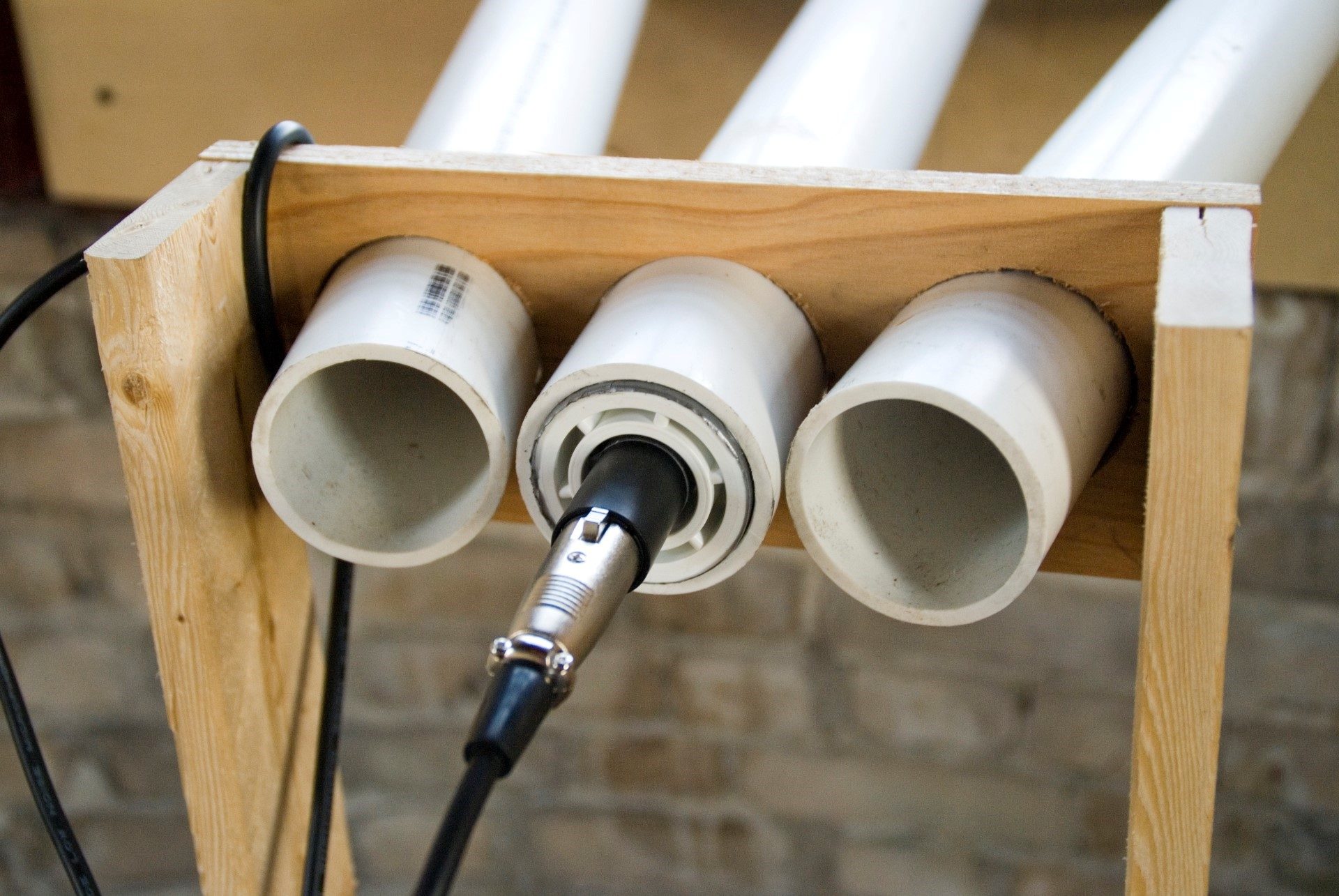 A set of 33 tubes was installed at the tower of the lighthouse. The tubes worked as analog filters to the ambient sounds. The specific resonance of each tube amplified certain frequencies. The tubes were tuned in a pentatonic scale (F, G#, Bb, C, D#). Microphones inside the tubes recorded the filtered sounds. Visitors were welcome to play around with amixer and combine the sounds from the tubes to chords and melodies. The sound were audible onloudspeakers inside the building.