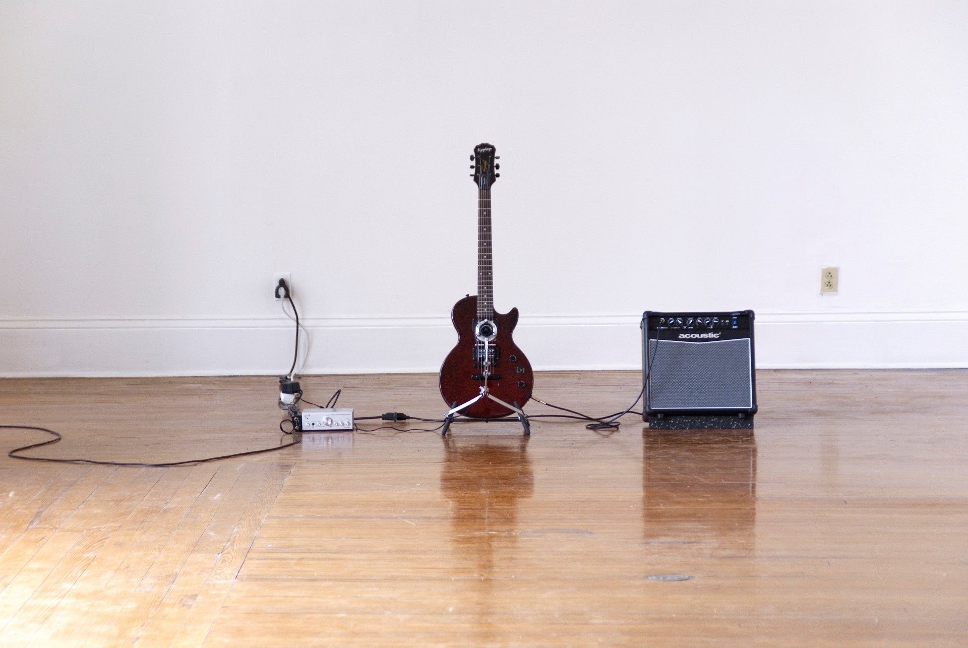 An electric guitar were played by the ambient sounds. A condenser-microphone outside the lighthouserecorded all ambient-sounds and passed them on to an electromechanical transducer which wasconnected to the strings of an electric guitar. The guitar-strings resonated depending on the incomingsounds. The tuning of the guitar related to chords of the Blues. In combination the two instruments created an ongoing live soundscape that could be as well influenced as live played by the visitors. The outside world with its specific noises was transformed, reflected and replayed inside in an harmonical contemplative way
